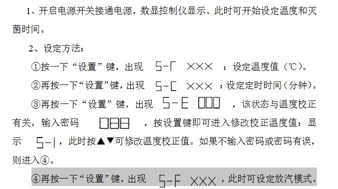 1、開啟電源開關(guān)接通電源,數(shù)顯控制儀顯示。此時(shí)可開始設(shè)定溫度和滅菌時(shí)間。