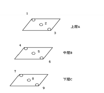 6.1.1試驗方法:在設(shè)備空載情況下,設(shè)置干燥箱的溫度分別為80℃、105℃、120℃,將溫度記錄儀的探頭置于干燥箱內(nèi)的各點內(nèi),探頭不能與干燥箱腔室內(nèi)金屬表面接觸,啟動干燥箱開始加熱,等干燥箱穩(wěn)定30min后啟用溫度記錄儀,每間隔5min記錄一次溫度,連續(xù)記錄4小時,每種溫度設(shè)置運(yùn)行三次以檢查其重現(xiàn)性??蛰d溫度探頭分布如下: