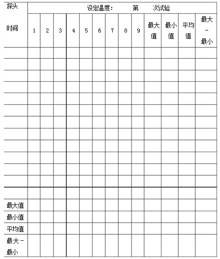 6.1.2可接受標(biāo)準(zhǔn):溫度波動≤±1℃ 6.1.3空載熱分布試驗記錄