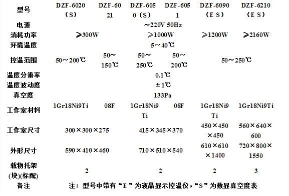 升級型液晶顯示真空干燥箱,除以上功能外還具有液晶顯示溫度,控溫更為精確。數(shù)顯真空度表采用數(shù)字技術(shù)來控制真空度,通過數(shù)顯真空計自動控制真空度,真空計采用電阻硅管壓力傳感器,從而保證穩(wěn)定的壓力值,不受氣流影響,把穩(wěn)定的壓力值傳給真空計LED顯示屏上,控制精度為±1%,改變了手動杠桿控制的歷史。另可配RS-485接口,可連接打印機和計算機,能記錄溫度參數(shù)的變化狀況(選配)。 技術(shù)參數(shù)