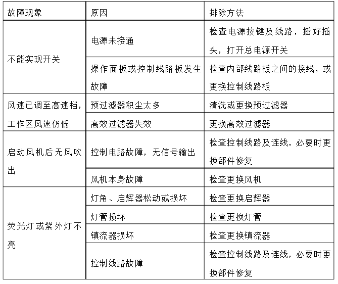 5.4.11定期(一般每二月一次)用風(fēng)速計測量操作區(qū)風(fēng)速應(yīng)≥0.3m/s。 5.4.12一般故障處理
