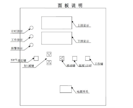 1、開啟電源開關(guān)接通電源,數(shù)顯控制儀顯示。上排顯示測量溫度及計時